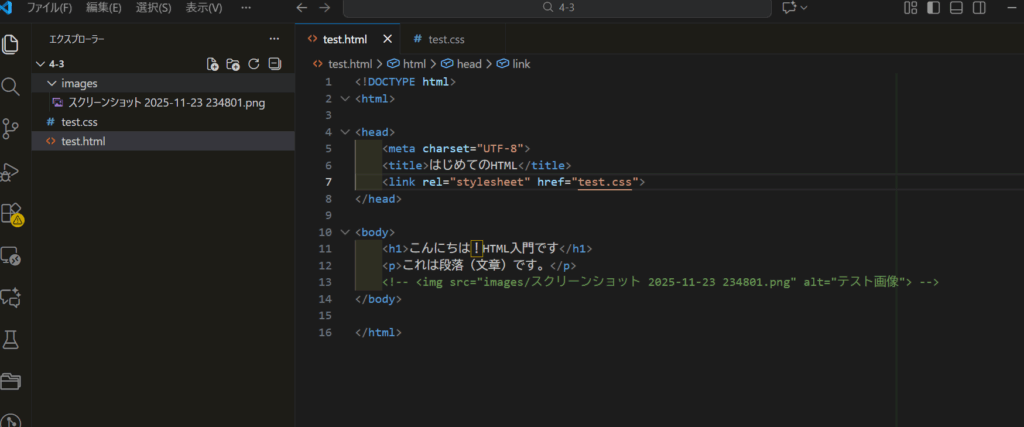 さらにHTMLとCSSをファイルごとに役割分担できているので、分かりやすいです!