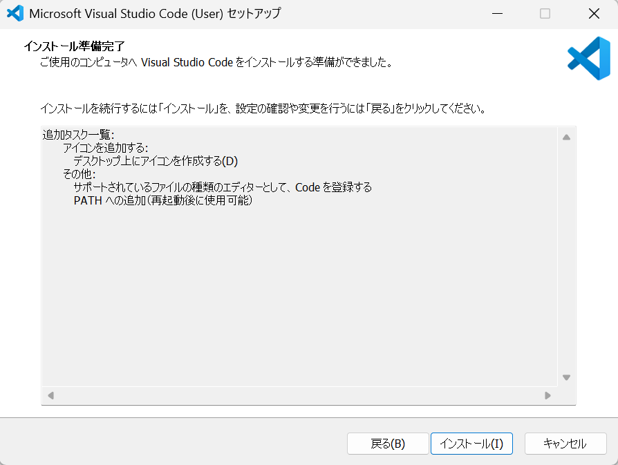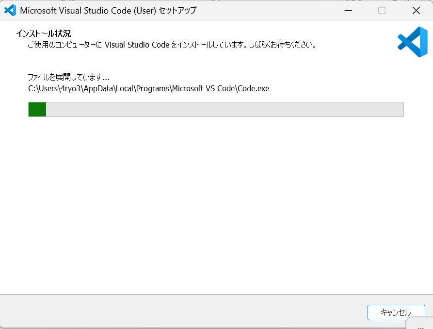 ここまでくればあとは簡単、インストールボタンを押してインストールを始めましょう。